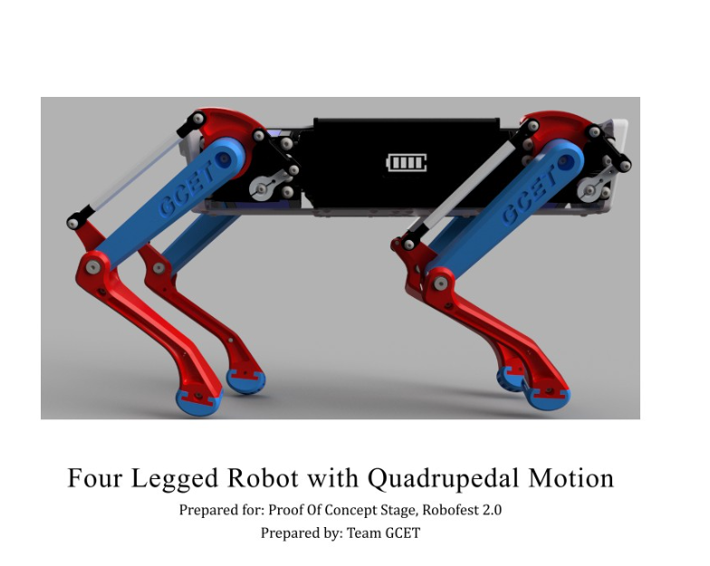This introduces robust, dynamic quadruped designed by team GCET. The terrain over which, these robots must be able to move is often uneven, slippery or muddy, which gives rise to many challenges, particularly stability. Two of the most common methods for robot mobility are wheels and legs. The necessity of legged robots is increasing day by day, as compared to the wheeled robots. Legged robots are more advantageous and versatile than wheeled robots, on uneven terrain such as military operations, remote locations, dangerous environments, excavation and construction works and medical applications.This paper presents, design of a quadruped robot having four legs, whose design is derived from Animal structure. An attempt was also made, to perform inverse kinematic analysis on the design for validation